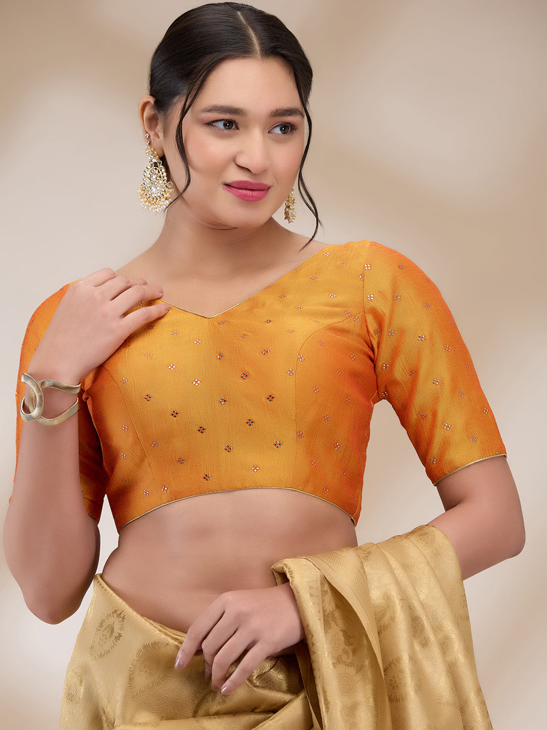 Mustard Silk Blend Printed Half Sleeves Blouse