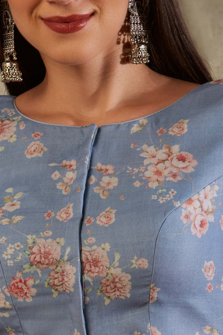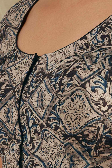 Navy Blue Cotton Printed Three Quarter Sleeves Blouse