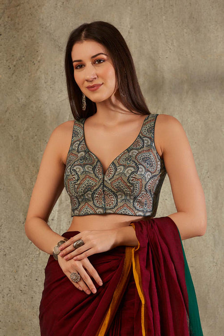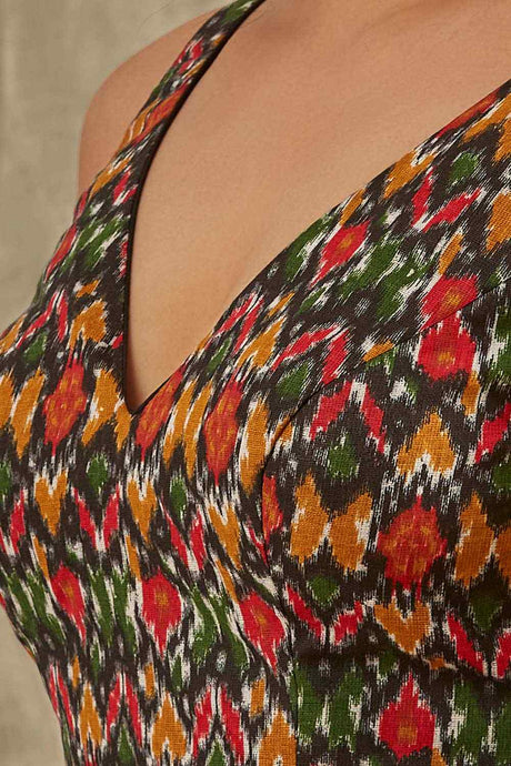 Multicolor Khadi Cotton Printed Sleeveless Blouse