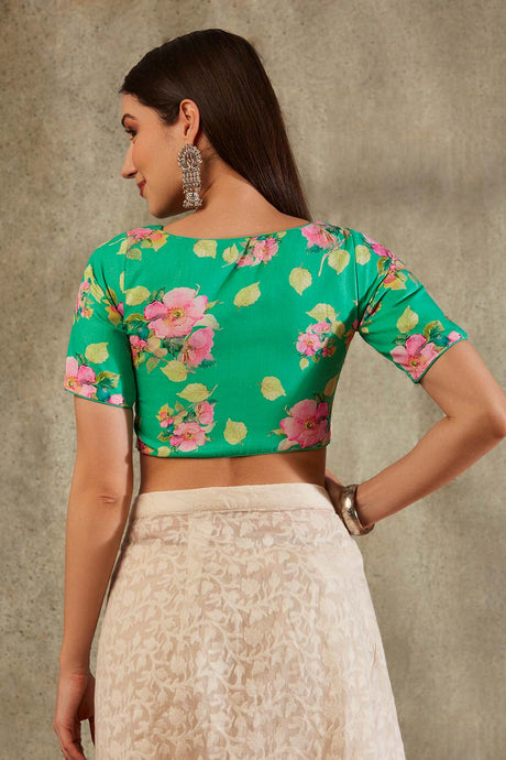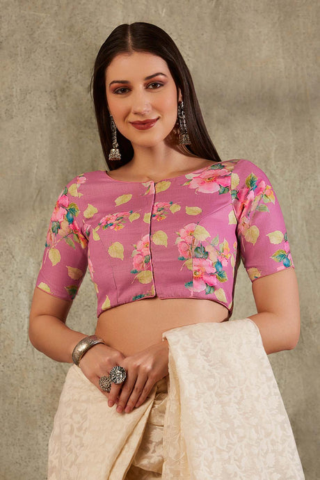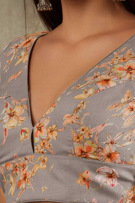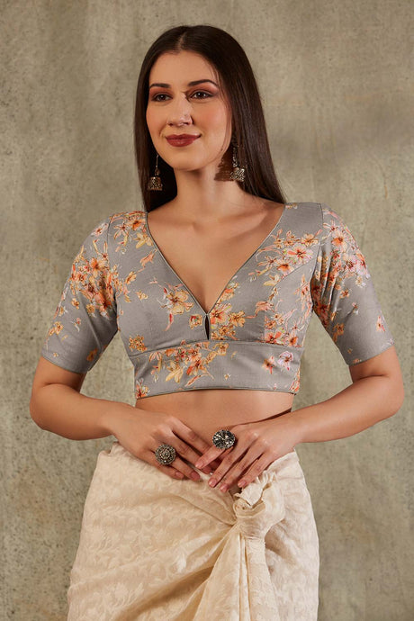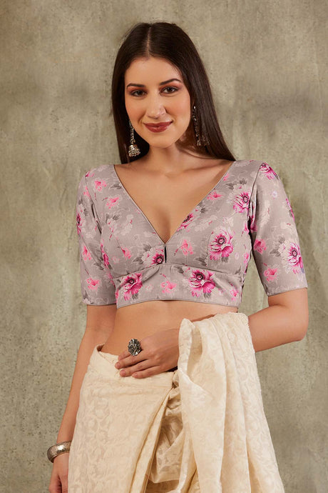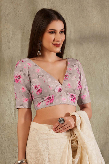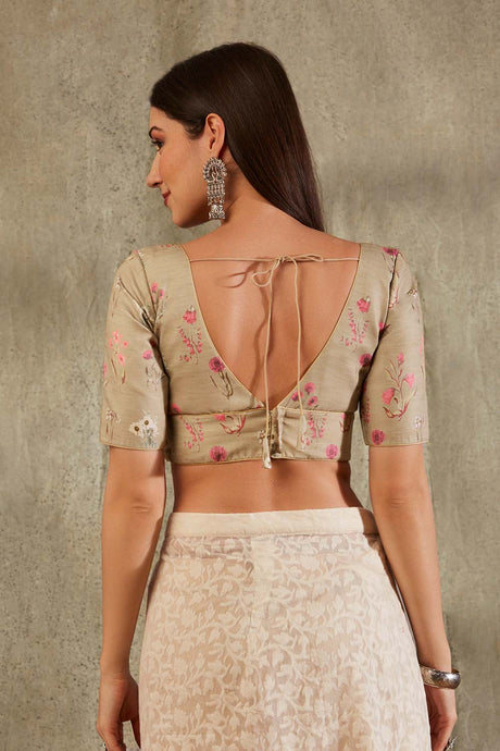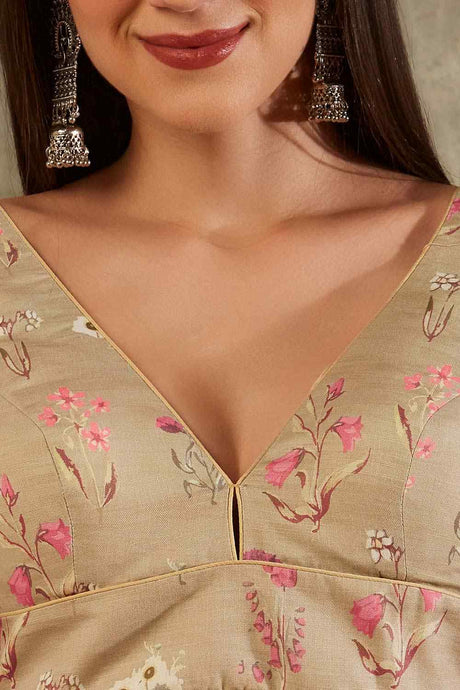 Beige Cotton Printed Three Quarter Sleeves Blouse