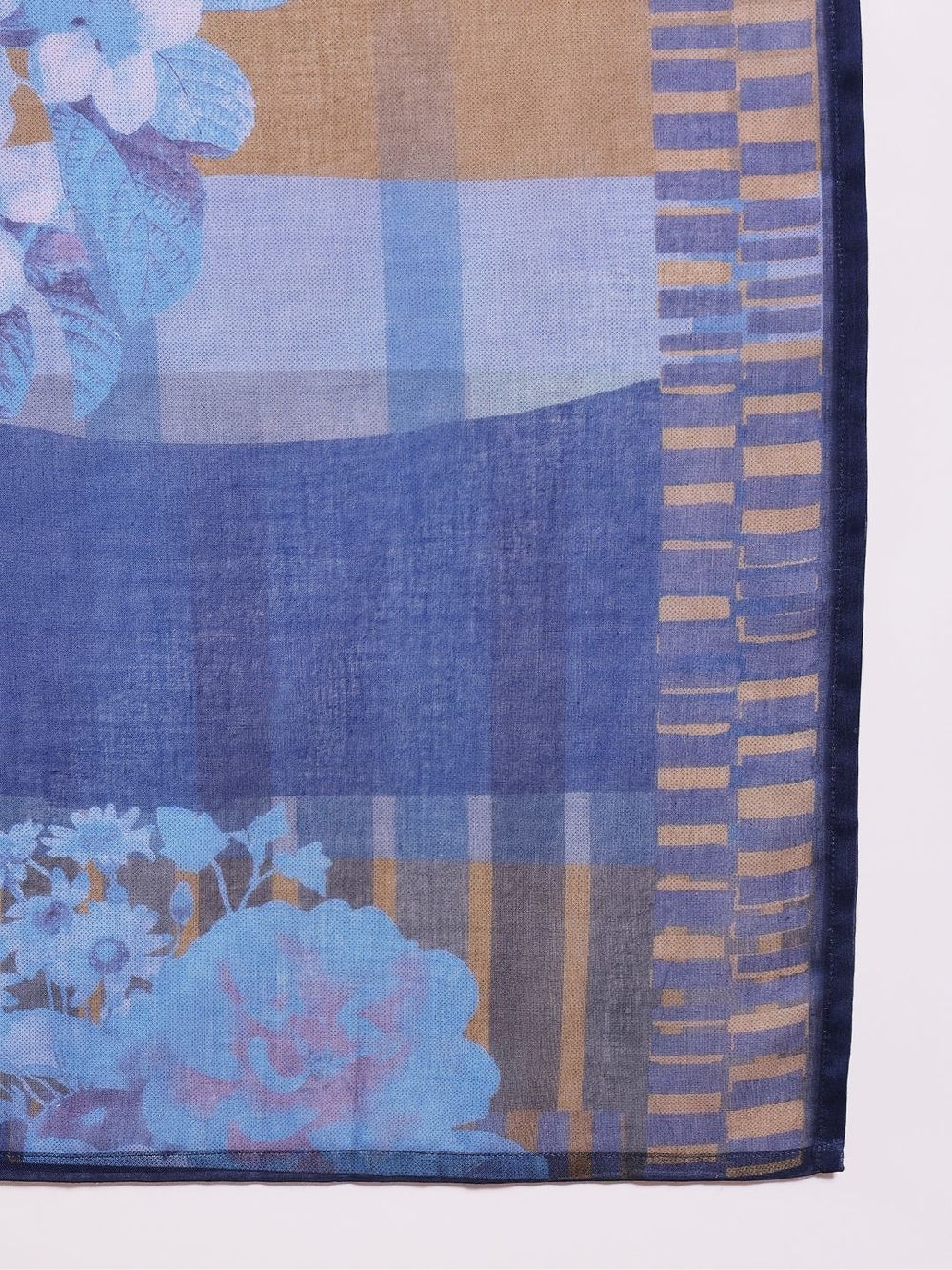Blue Silk Blend Floral Printed Straight Kurti Pant With Dupatta
