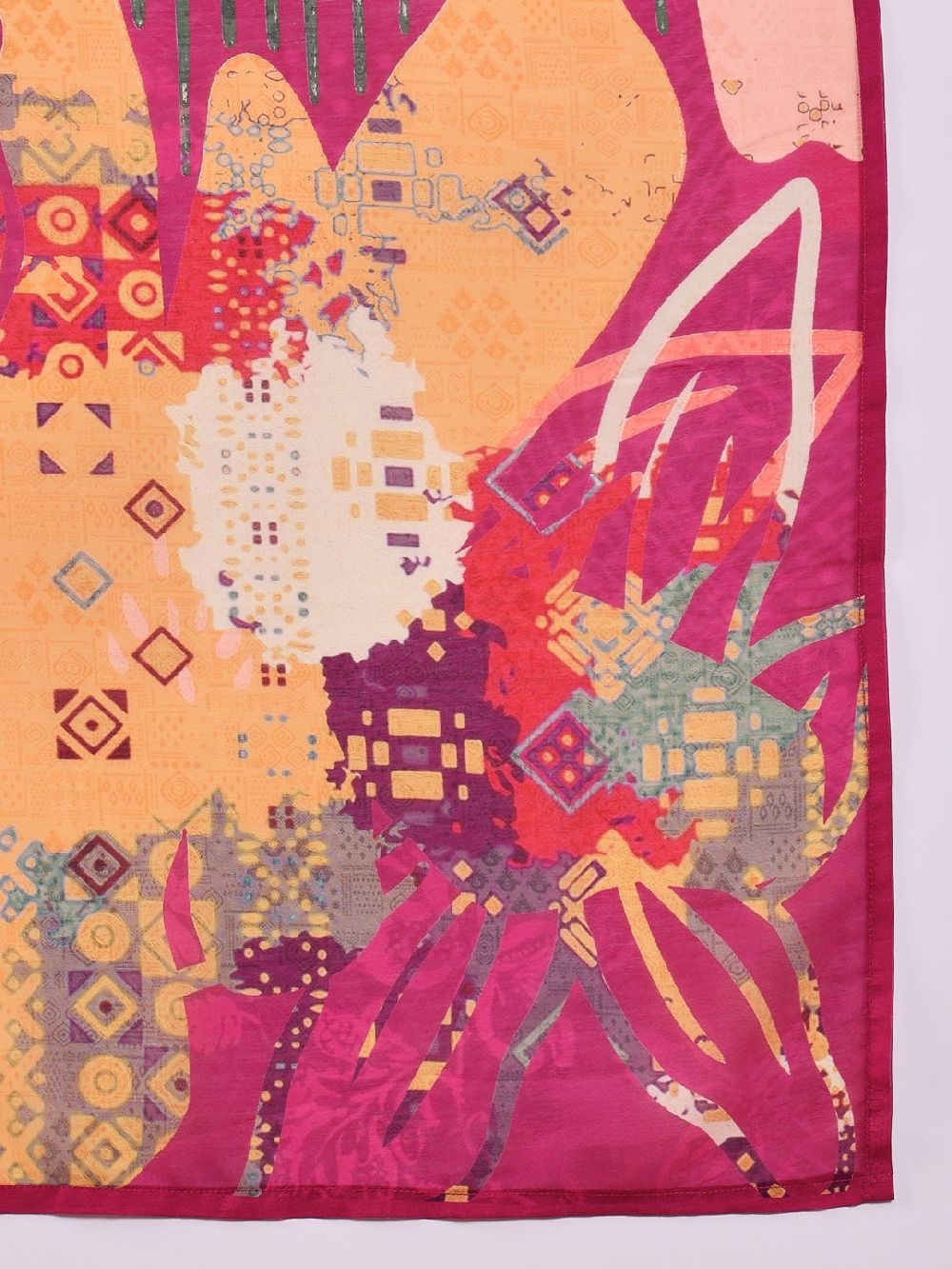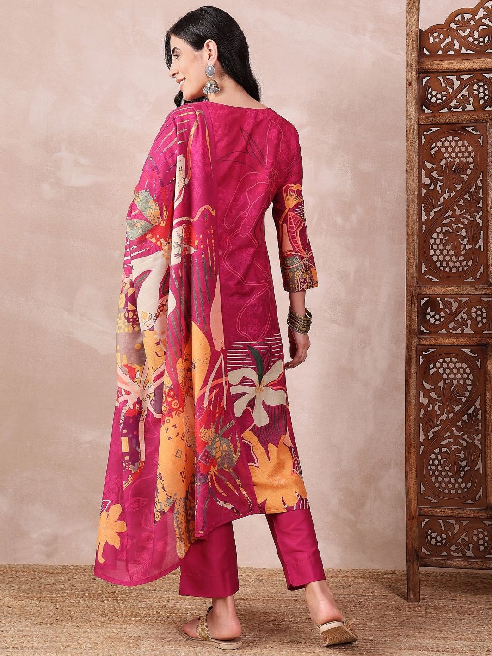 Pink Silk Blend Floral Printed Straight Kurti Pant With Dupatta