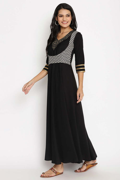 Black Silk Blend Floral Printed Straight Kurti Pant With Dupatta