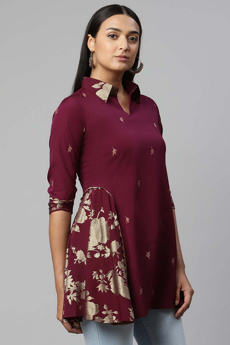 Maroon Georgette Gold Printed Kurti