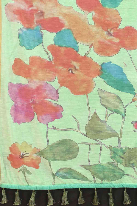 Cotton Art Silk Printed Saree In Light Green