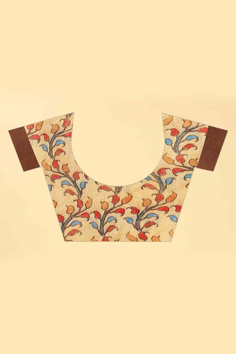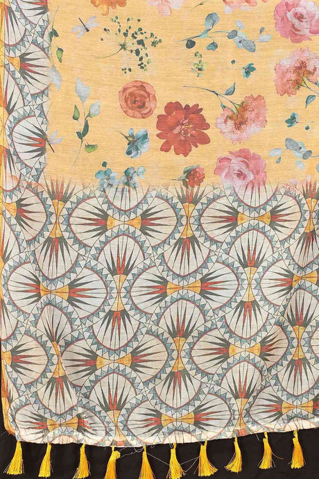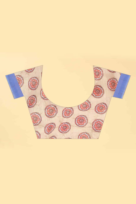 Beige Printed Cotton Blend Saree