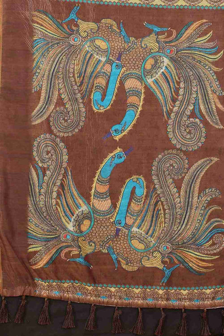 Brown Printed Cotton Blend Saree