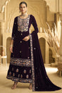 Wine Sequin with Embroidered Velvet Palazzo Suit Set