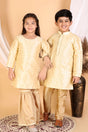 Boys Gold Silk Blend Kurta Pajama Set & Girls Jacquard Kurta With Sharara Set