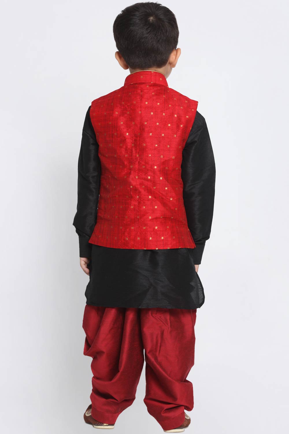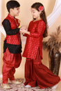 Boys Maroon And Black Silk Blend Jacket, Kurta And Dhoti Set & Girls Jacquard Kurta With Sharara Set