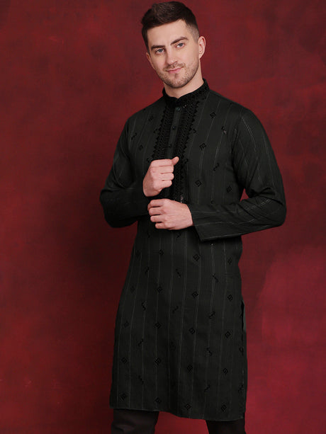 Men's Black Sequins Embroidered Kurta