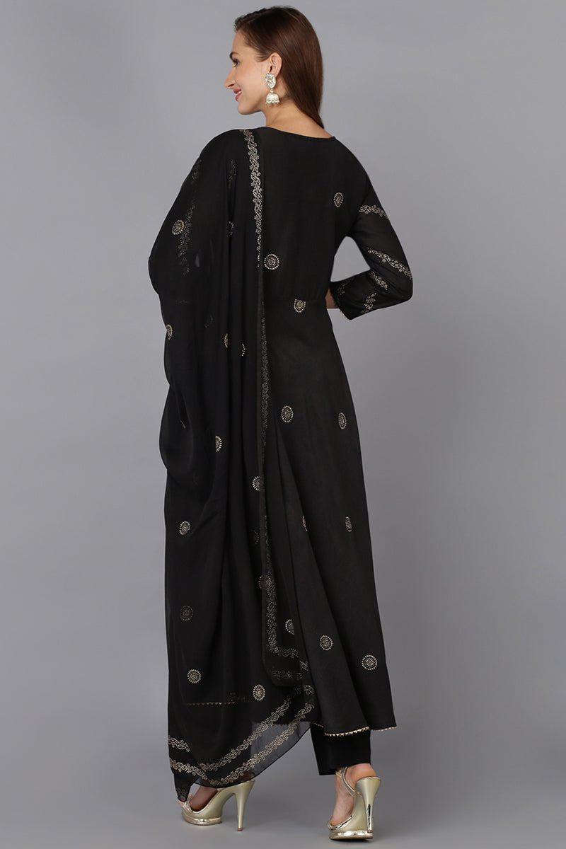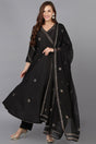 Black Silk Blend Ethnic Motifs Straight Suit Set