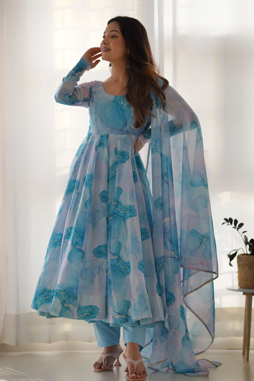 Step into effortless style with our Anarkali Suit Set crafted for the modern woman who cherishes tradition. Made from soft Organza it keeps you comfortable all day long. The Abstract Printed design lends a touch of sophistication to your outfit. Perfect for Casual this Anarkali Suit Set is a must-have for versatile styling options. Style it with minimalistic accessories and flats for a casual look or jewelry and heels for special events