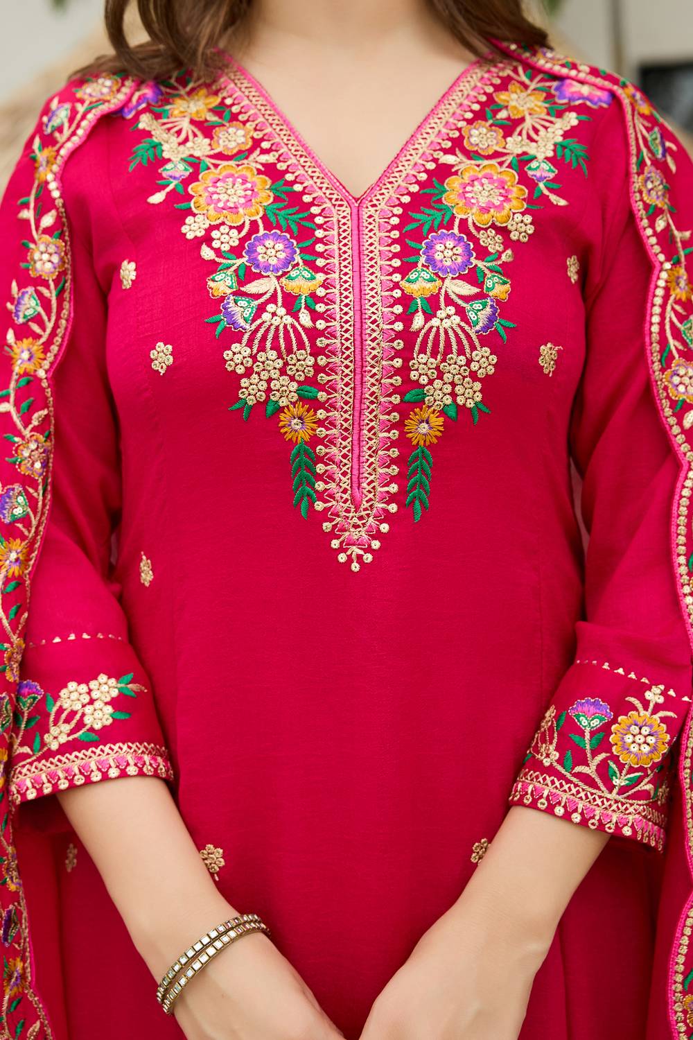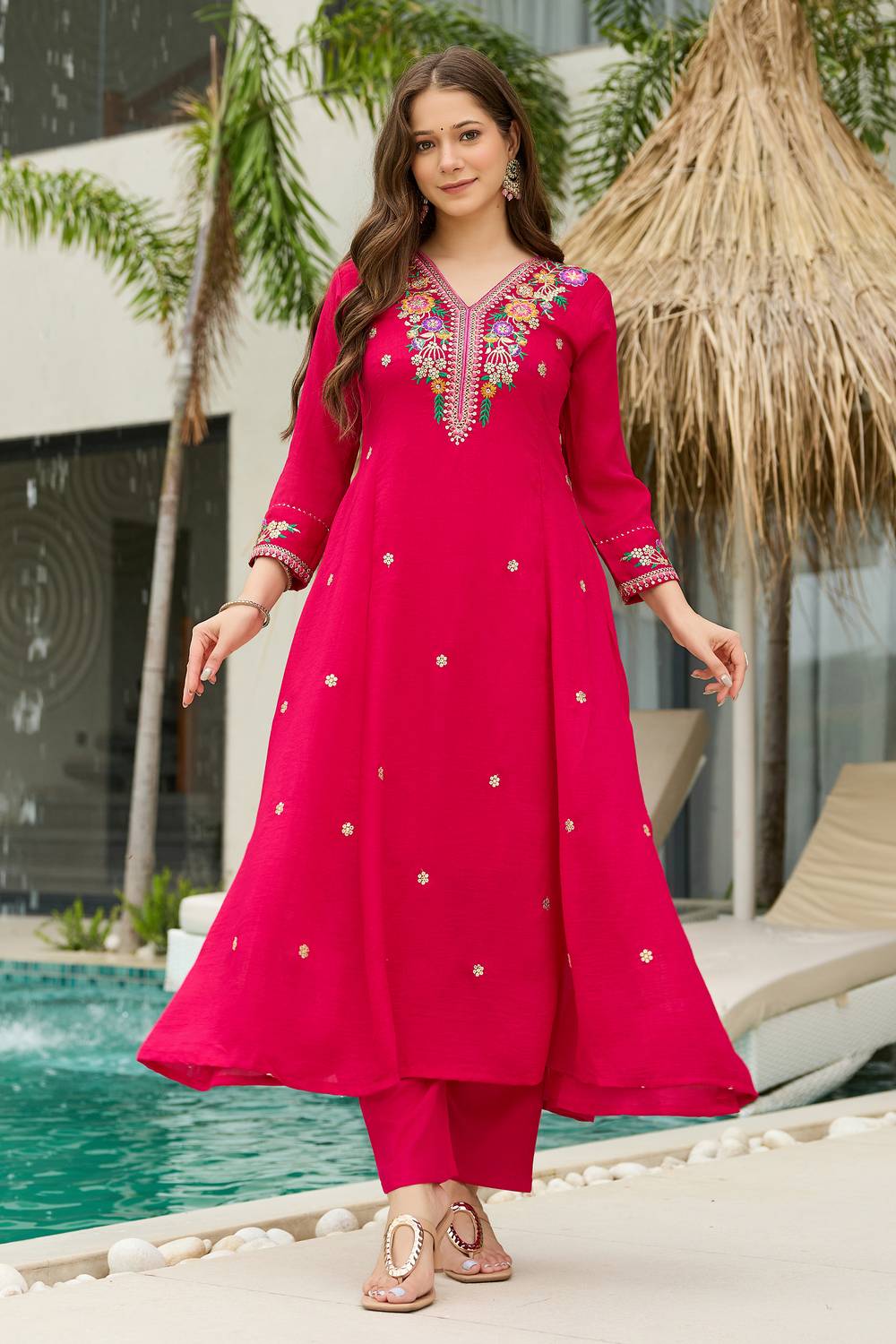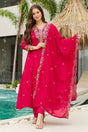 Magenta Floral Embroidered Silk Anarkali Suit Set