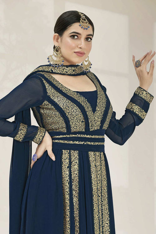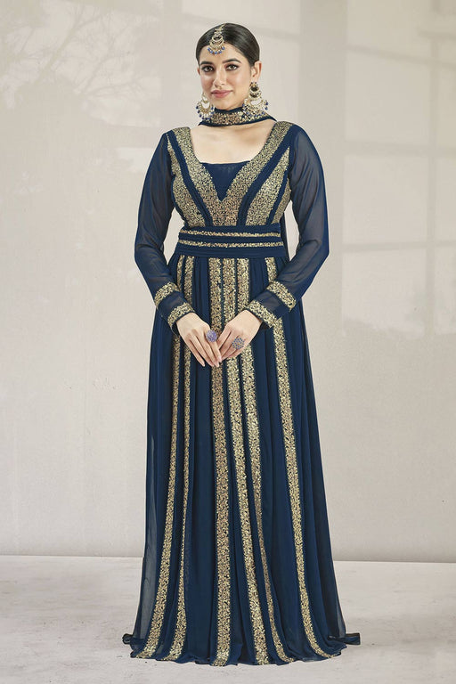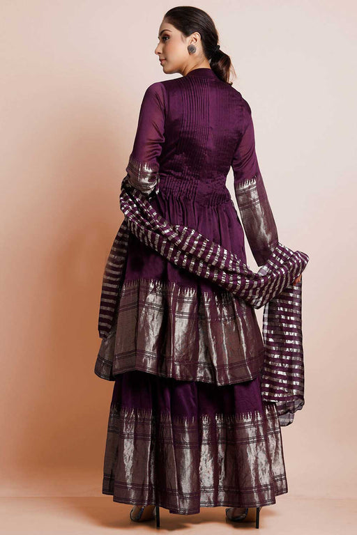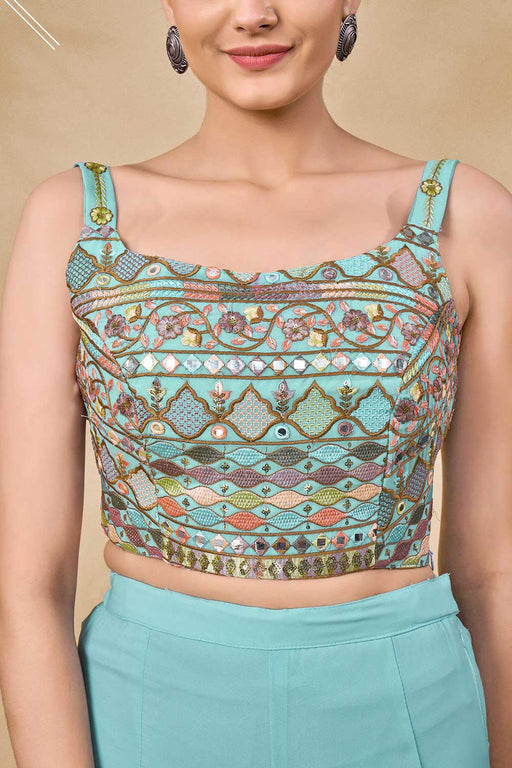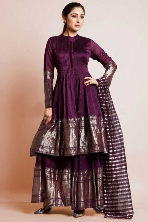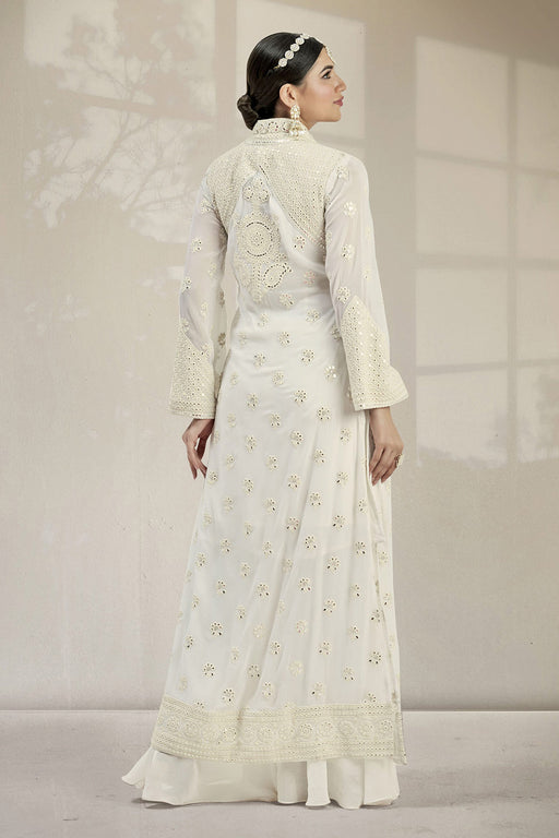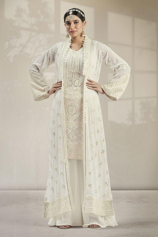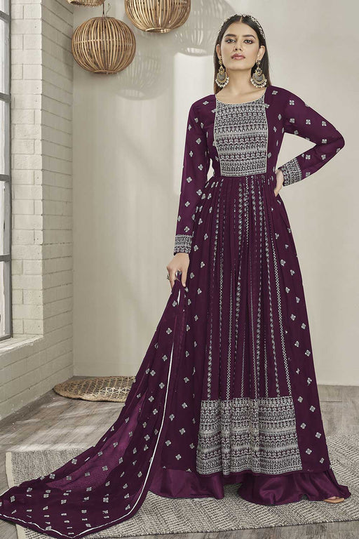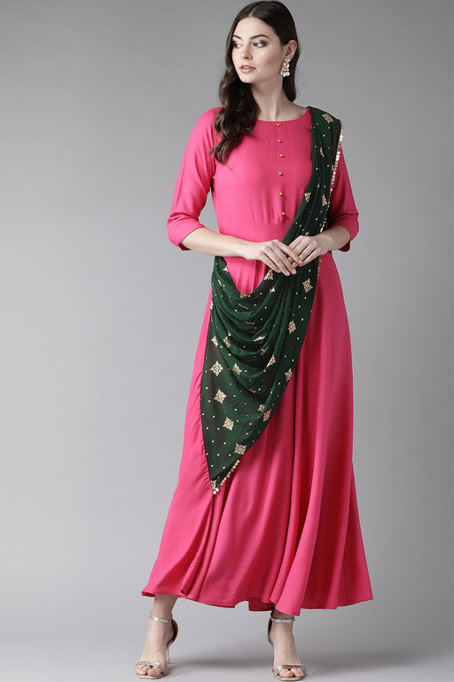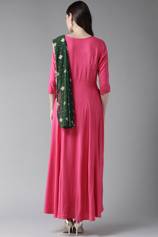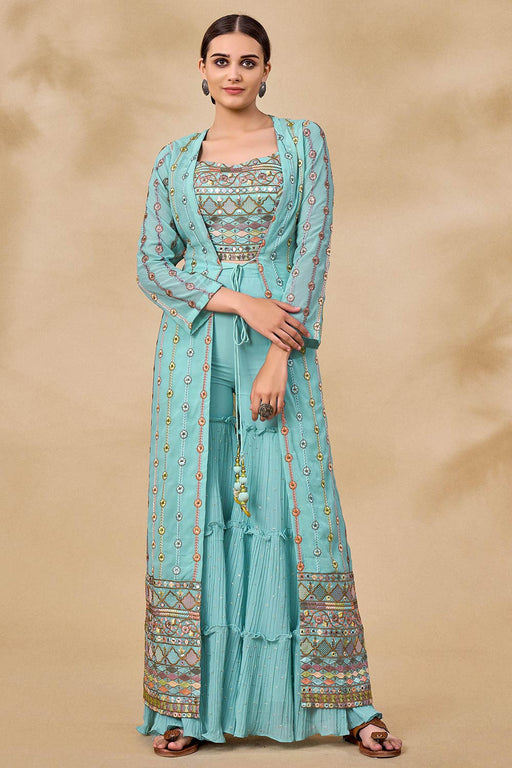 Pink Embroidered Georgette Stitched Indo-Western Suit Set