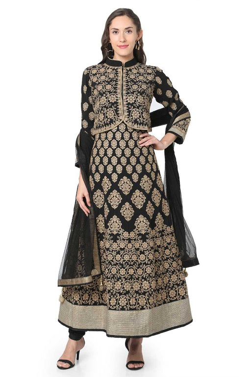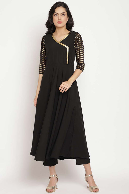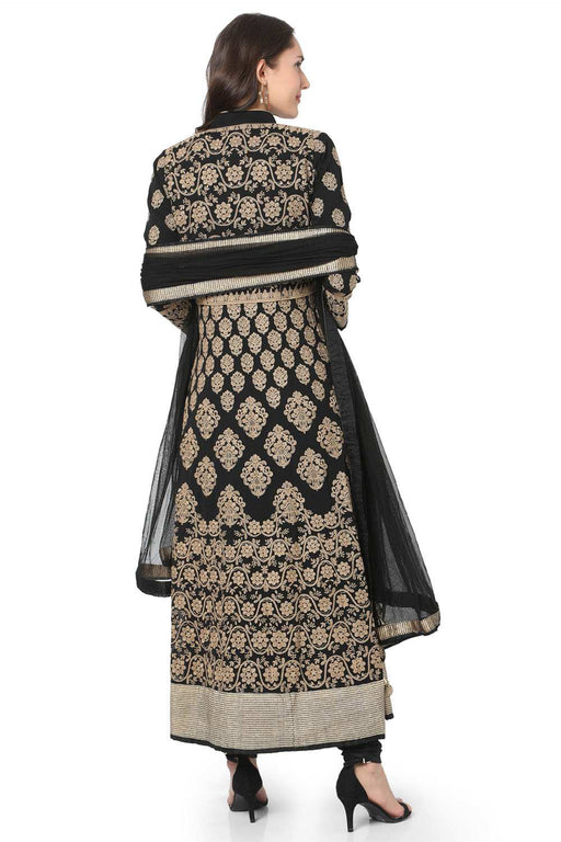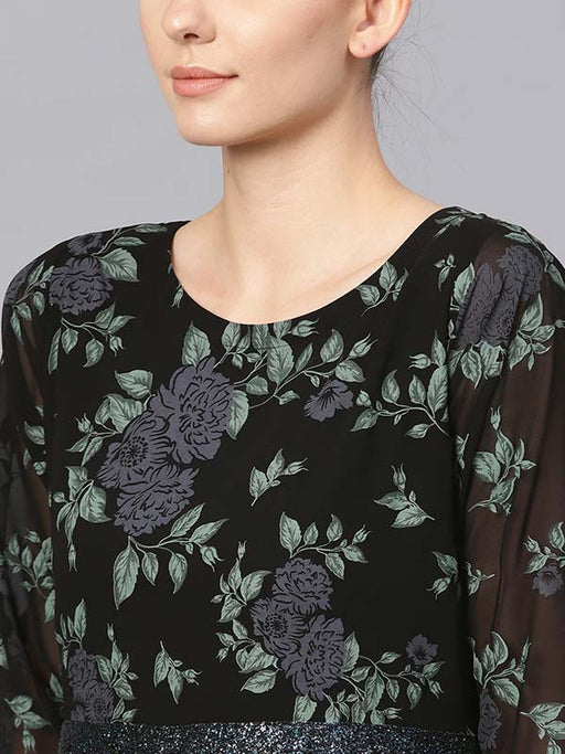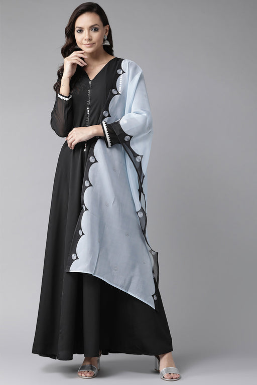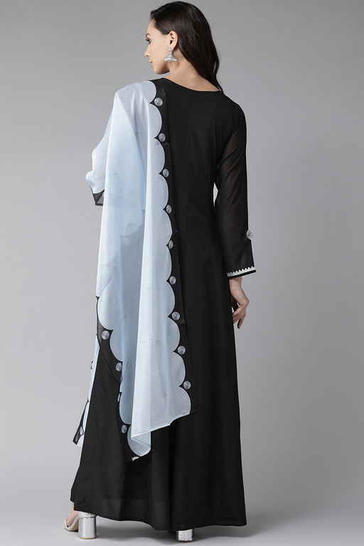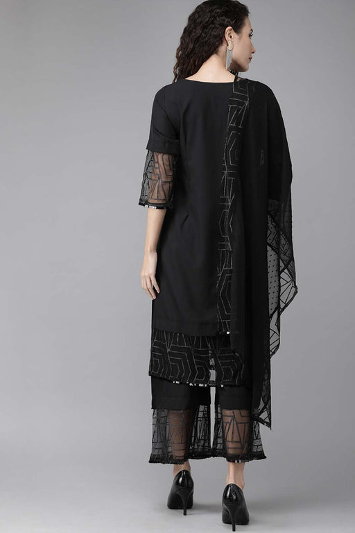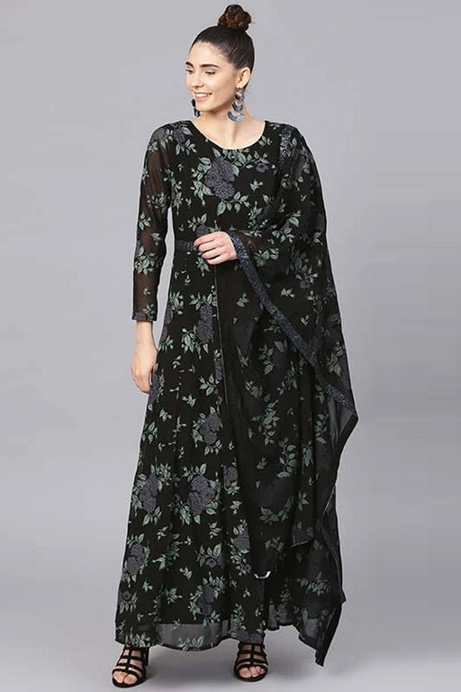 Black Faux Georgette Digital Printed Indo-Western Suit Set