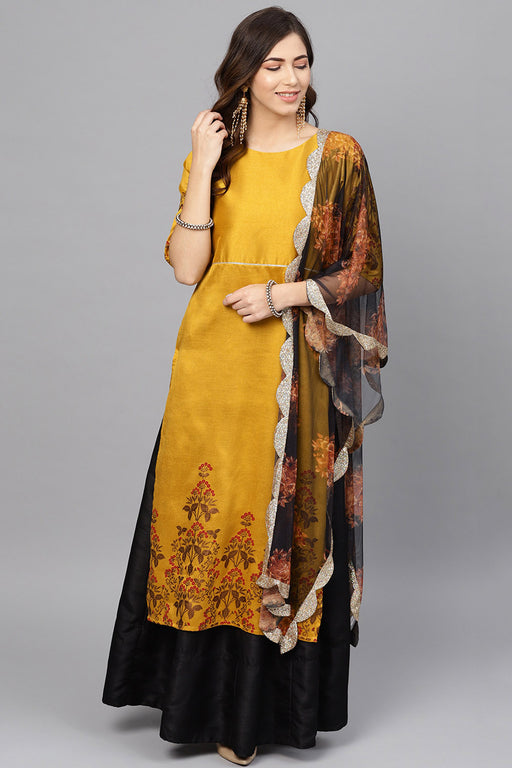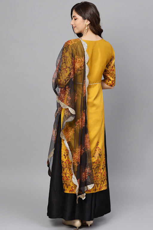 Yellow Faux Georgette Digital Printed Indo-Western Suit Set