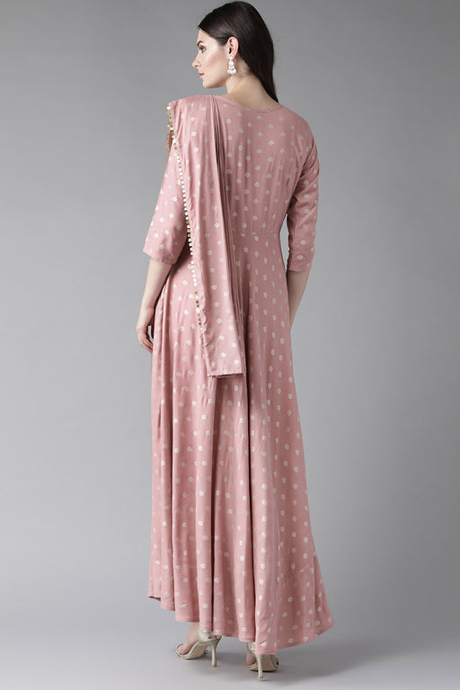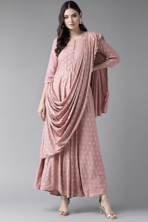 Pink Rayon Digital Printed Indo-Western Suit Set