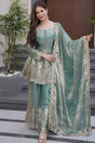 Blue Floral Sequin Silk Palazzo Suits (ACA6867)