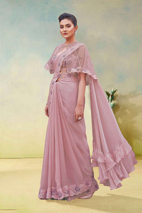 Sale price $63.00 USD Regular price $72.00Unit price /Unavailable Pink Solid with Embellished Satin Ready to Wear Saree
