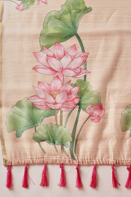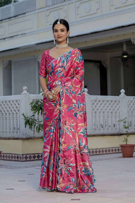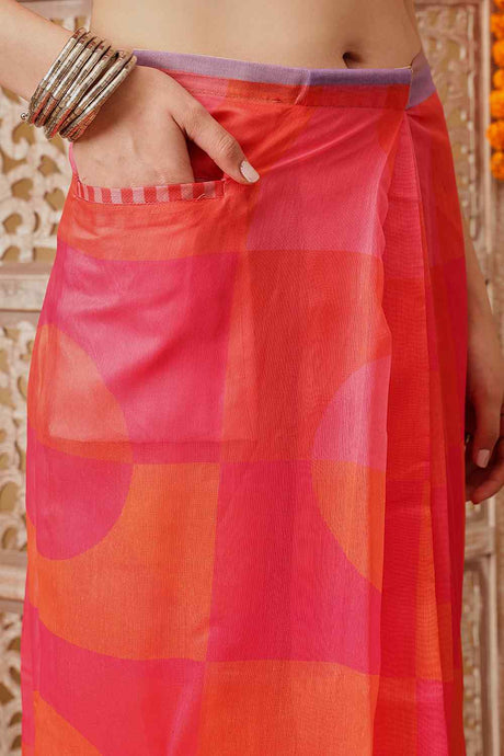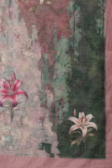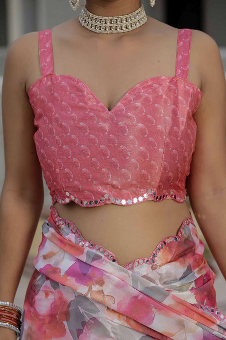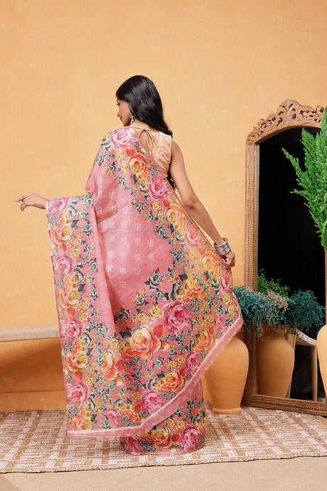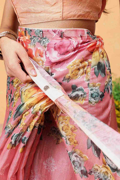 Pink Floral Printed Cotton Blend Ready to Wear Saree