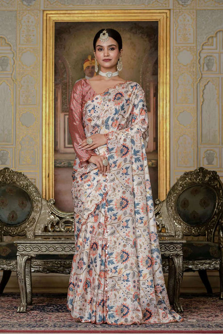 Multi Color Floral Printed Chinon Ready to Wear Saree