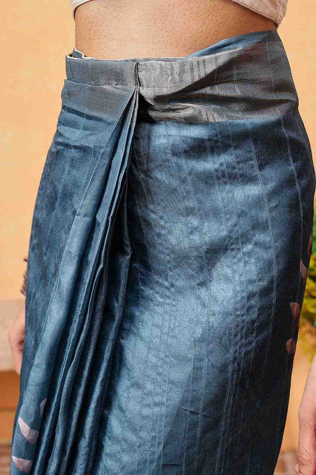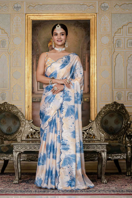 Blue Floral Printed Art Silk Ready to Wear Saree