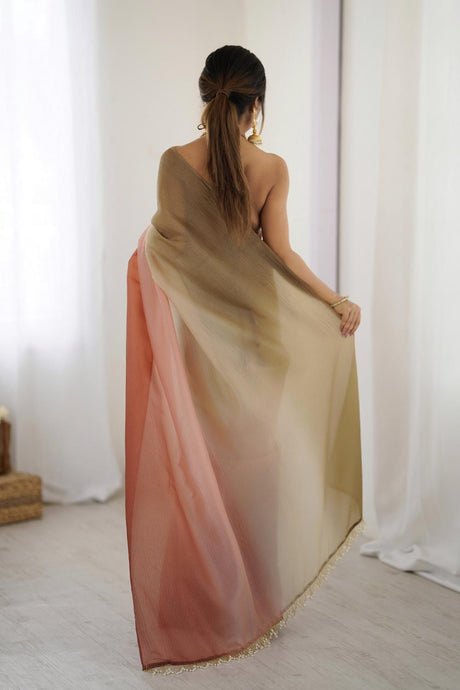 Peach Satin Silk Solid Ready to Wear Saree