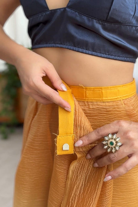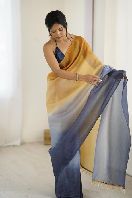 Yellow Satin Silk Solid Ready to Wear Saree