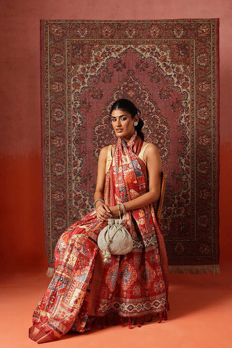 Red Floral Printed Silk Ready to Wear Saree