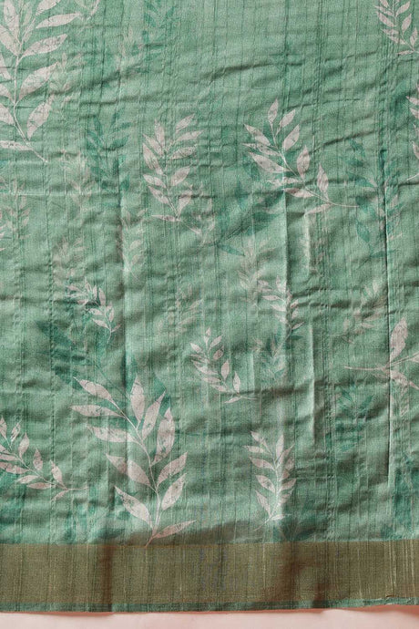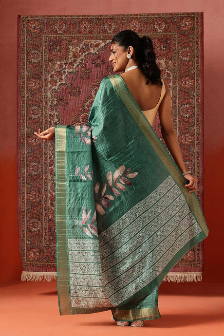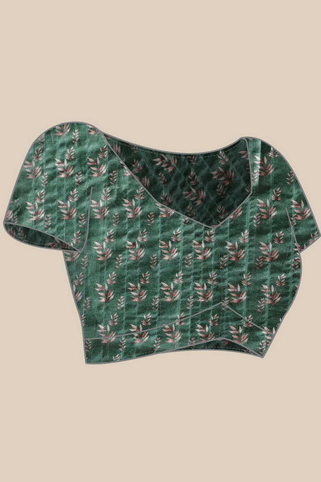 Green Floral Printed Silk Ready to Wear Saree