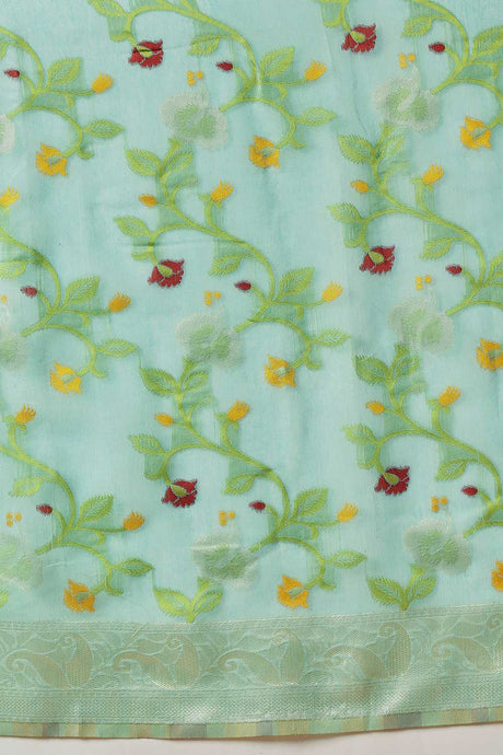 Turquoise Woven Cotton Blend Ready to Wear Saree