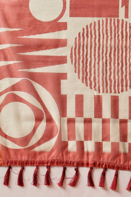 Maroon Abstract Printed Cotton Blend Ready to Wear Saree