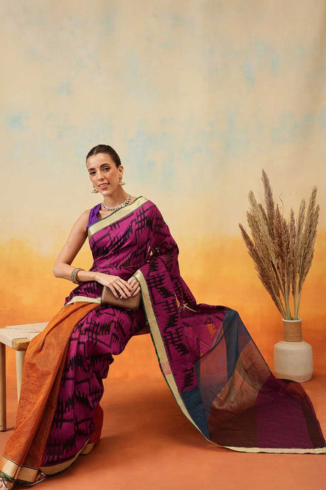 Multi Color Floral Printed Cotton Blend Ready to Wear Saree