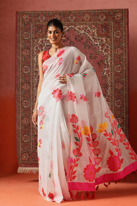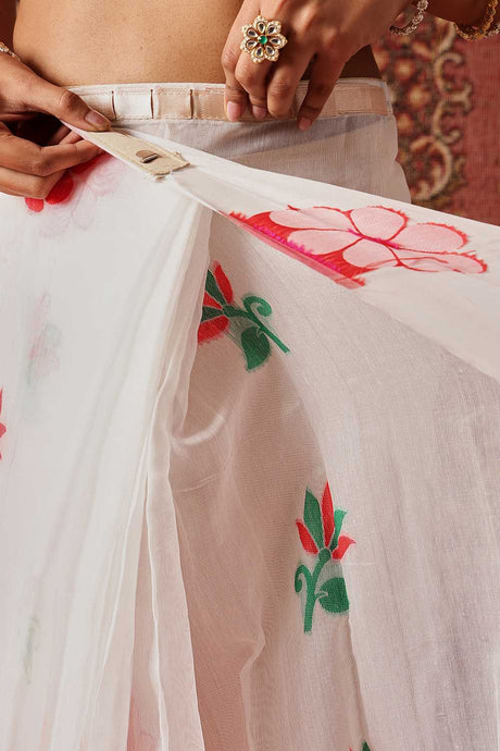 White Woven Cotton Blend Ready to Wear Saree