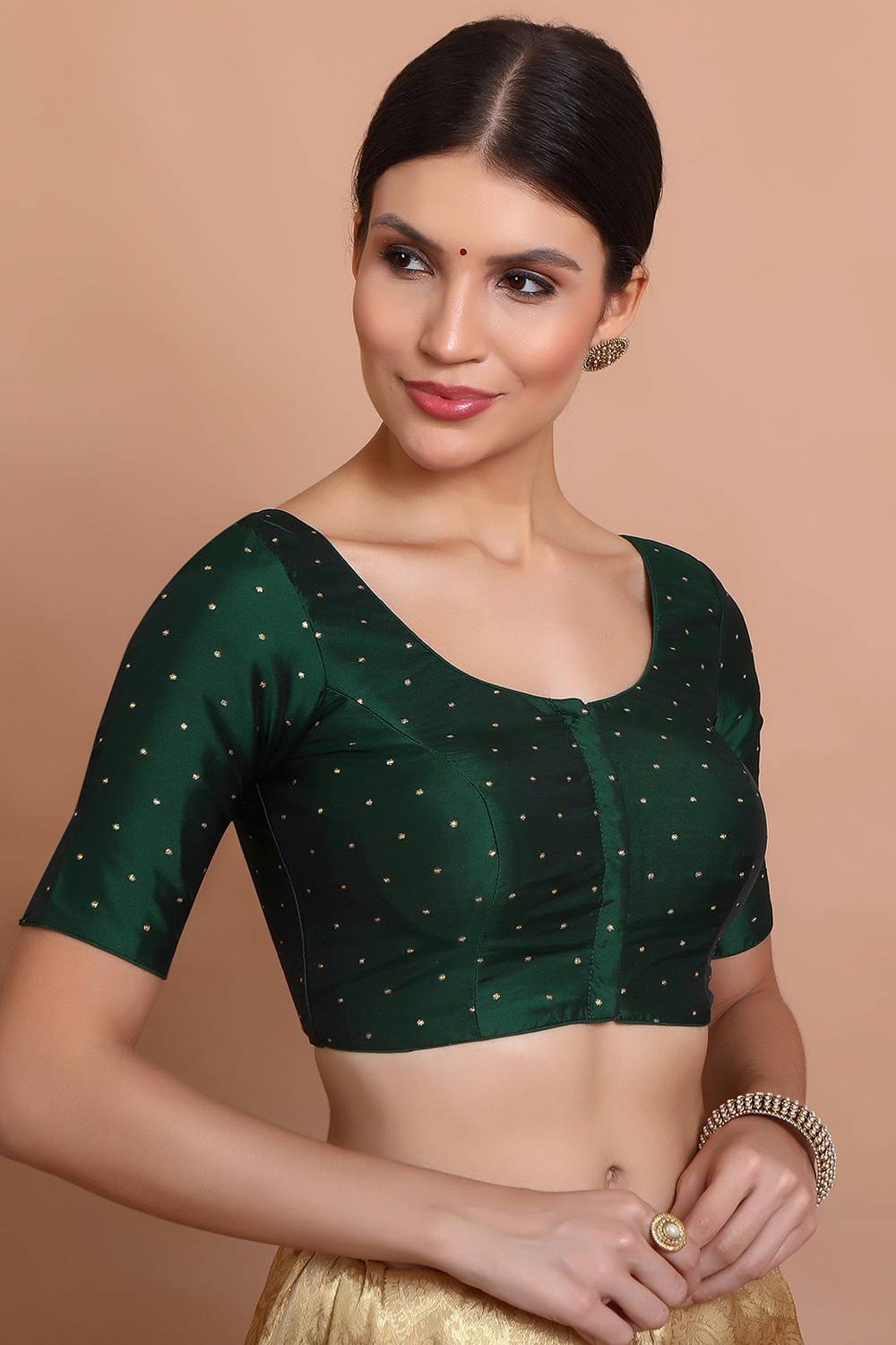 Transform your saree look with our Blouse the ultimate blend of style and comfort. Made from soft and breathable Silk it ensures a snug yet flexible fit. The intricate Woven make this blouse a wardrobe essential. Perfect for Festive it works beautifully with traditional or modern sarees alike. Team it with a silk saree, a bold necklace, and embellished sandals for a sophisticated look. Redefine your saree style with Blouse