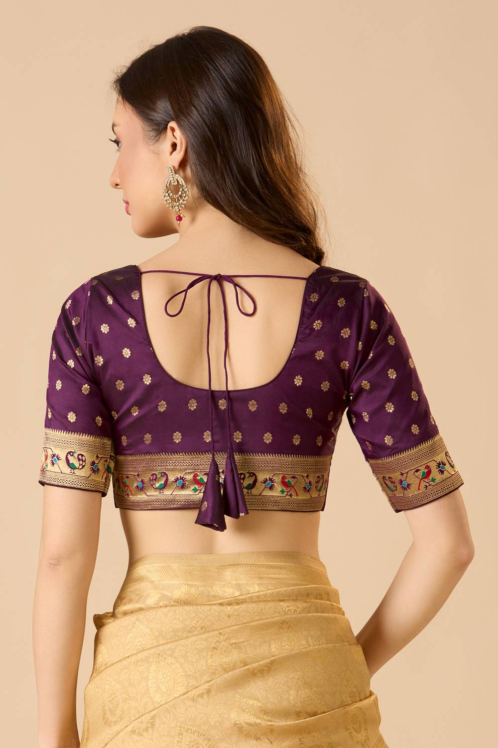 Transform your saree look with our Blouse the ultimate blend of style and comfort. Made from soft and breathable Silk it ensures a snug yet flexible fit. The intricate Woven make this blouse a wardrobe essential. Perfect for Festive it works beautifully with traditional or modern sarees alike. Team it with a silk saree, a bold necklace, and embellished sandals for a sophisticated look. Redefine your saree style with Blouse