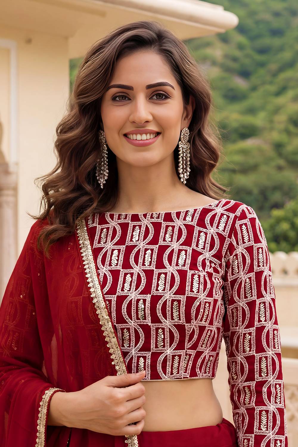 Step into the spotlight with our Lehenga a dazzling creation designed to make your special moments unforgettable. Crafted from premium Georgette this lehenga offers a perfect combination of elegance and ease, keeping you graceful all day long. The exquisite Solid paired with the intricate [Pattern] makes this lehenga a masterpiece of traditional craftsmanship. Whether it’s Festive, Sangeet, Mehendi or a grand celebration, this lehenga is the perfect choice to make a statement. Pair it with an ornate choker, a matching dupatta, and embellished stilettos to complete the regal look. Add a sleek bun or cascading curls for added glamour. Make every moment magical with the timeless allure of Lehenga