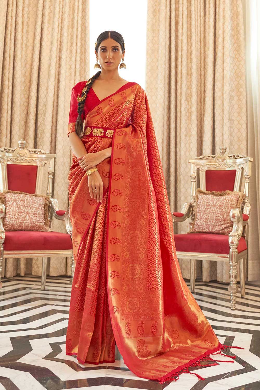 Kaabha Silk Red Woven Handloom Saree