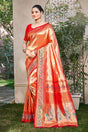Elevate your wardrobe with our exquisite Saree a masterpiece crafted to add timeless elegance to your style. Made from Kanjivaram Silk this saree offers a perfect mix of comfort and sophistication. Adorned with Woven it showcases intricate craftsmanship that speaks volumes of tradition and artistry. Perfect for Wedding this saree is a versatile addition to your collection, ensuring you stand out effortlessly. Pair it with elegant Jewelry, for a glamorous look. Add Clutches or Potli Bags and complete the ensemble with Wedges & Heels , making it a perfect choice for any event. Make a statement and embrace the elegance of Saree today