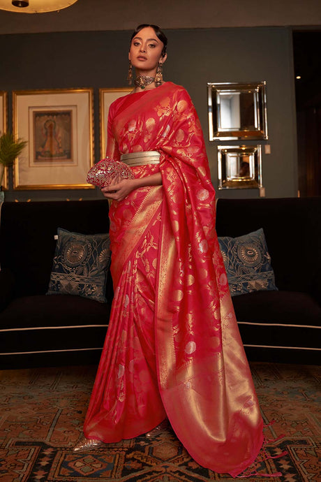 Red Burfi Silk Saree With Lycra Sequins Unstitch Blouse