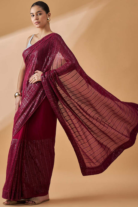 Wine Fancy Fabric Sequins Work Party Wear Designer Saree