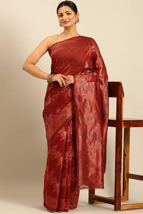 Maroon Kota Leheriya Organza Saree With Shimmer Unstitch Blouse