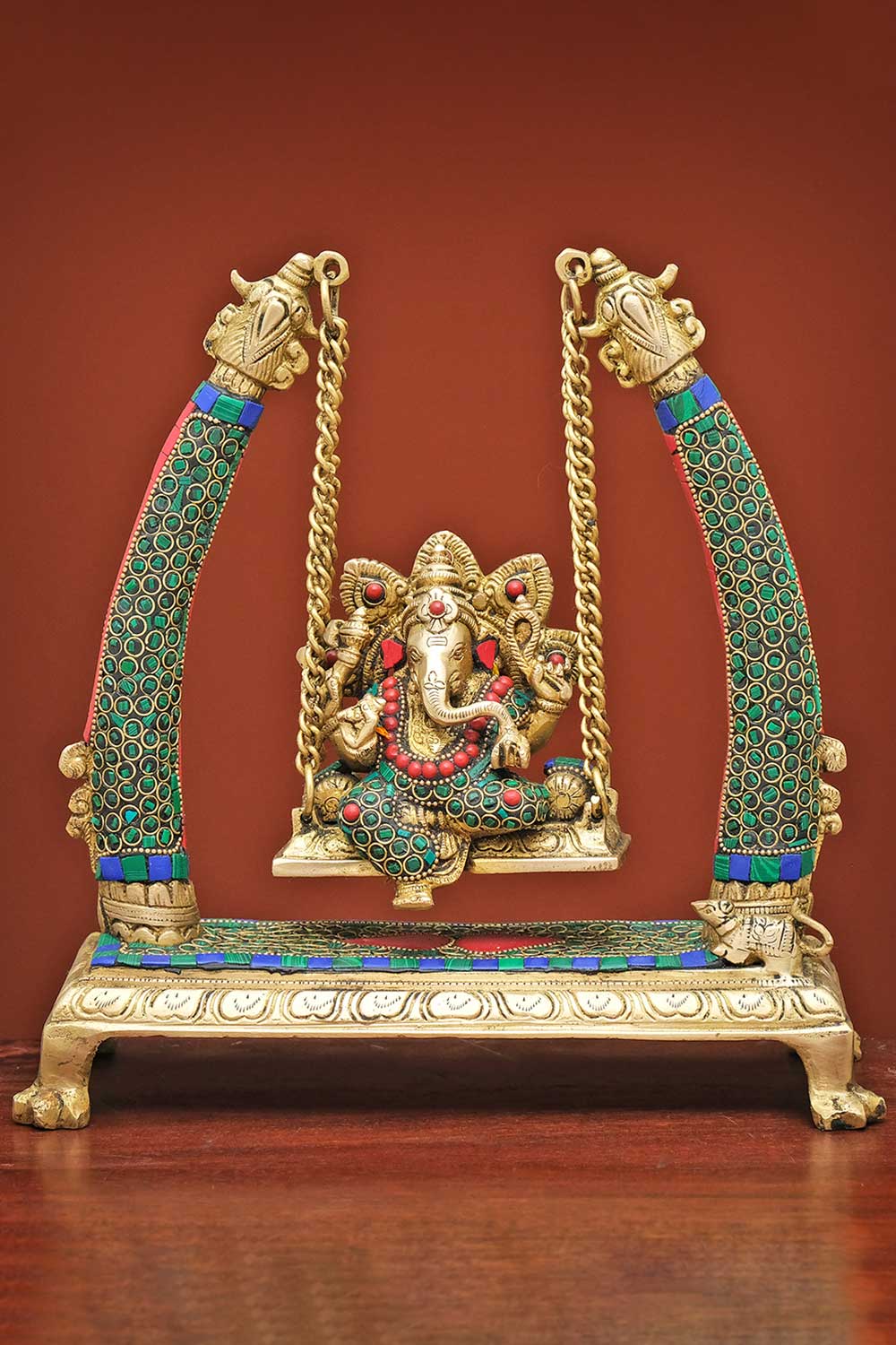 Lord Ganesha Idol On Swing Home Decor Ganesha Statue In Brass With Stonework