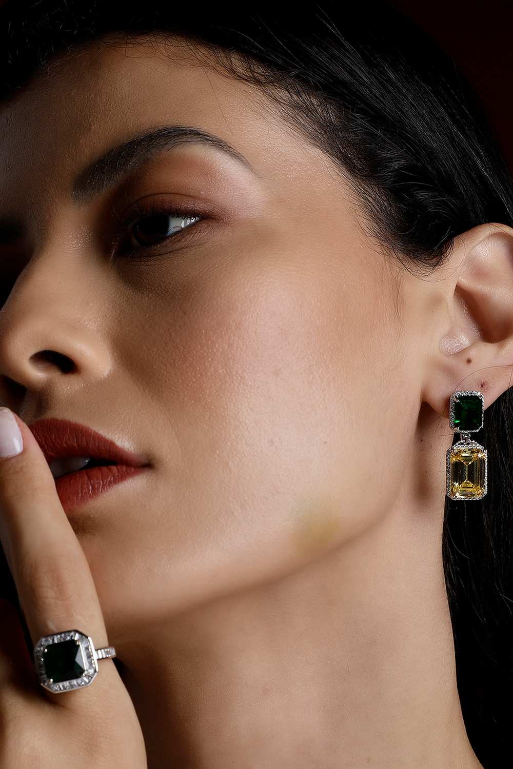 Add a subtle sparkle to your attire with our Ring a hand accessory crafted for timeless beauty. Designed with Alloy and featuring elegant American Diamond, Natural Stones, Faux Emerald it’s perfect for Partywear. Wear it solo for a minimalistic vibe or layer it with other accessories to create a statement look.