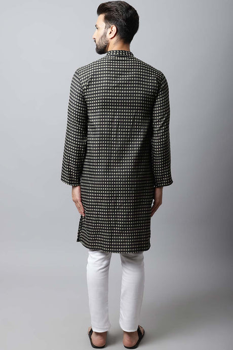 Men's Viscose Checks Kurta Top In Black