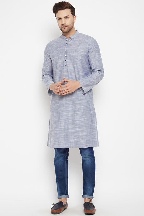 Men's Cotton Art Silk Solid Kurta In Blue