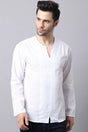 Men's Light White Self-Design Full Sleeve Short Kurta Top
