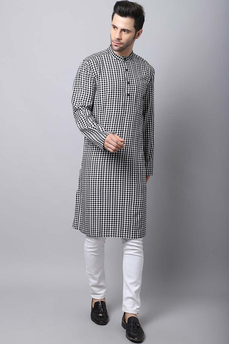 Men's Dark Black Self-Design Full Sleeve Long Kurta Top