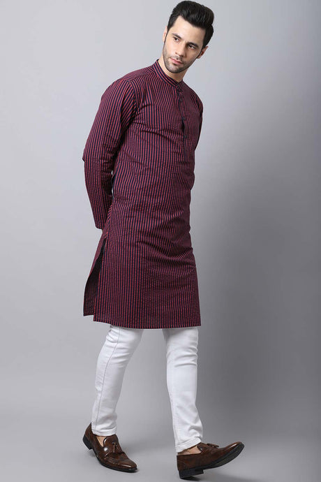 Men's Dark Maroon Solid Full Sleeve Short Kurta Top